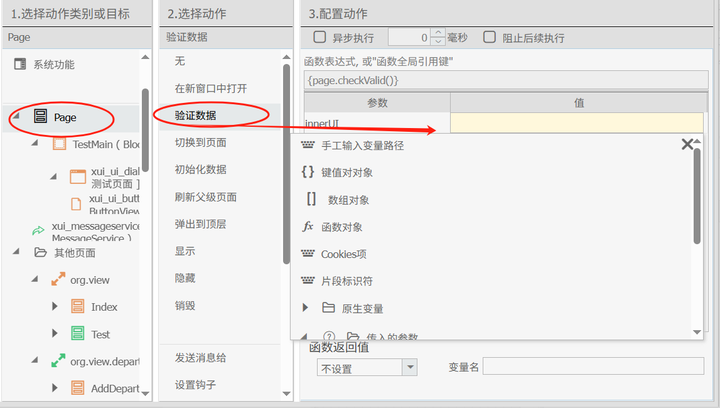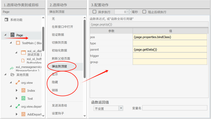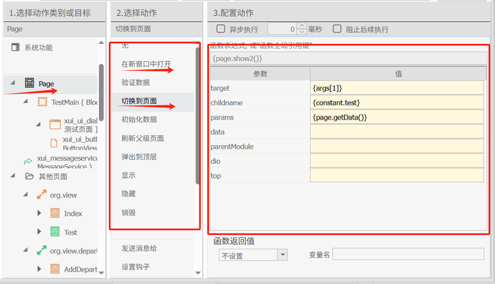 在页面交互支持上OneCode 还支持了,跨页面消息(xui。essageservice)的事件传递,这样当用户需要向指定页面发送消息已达到页面交互的效果。
