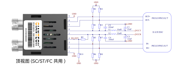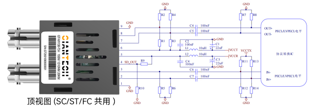注意:上表是假设光模块与协议转换IC 供电电压相同,如果协议转换IC 的供电与光模块的供电不同,协议转换IC 部分可根据供电电压按上表中参数匹配。