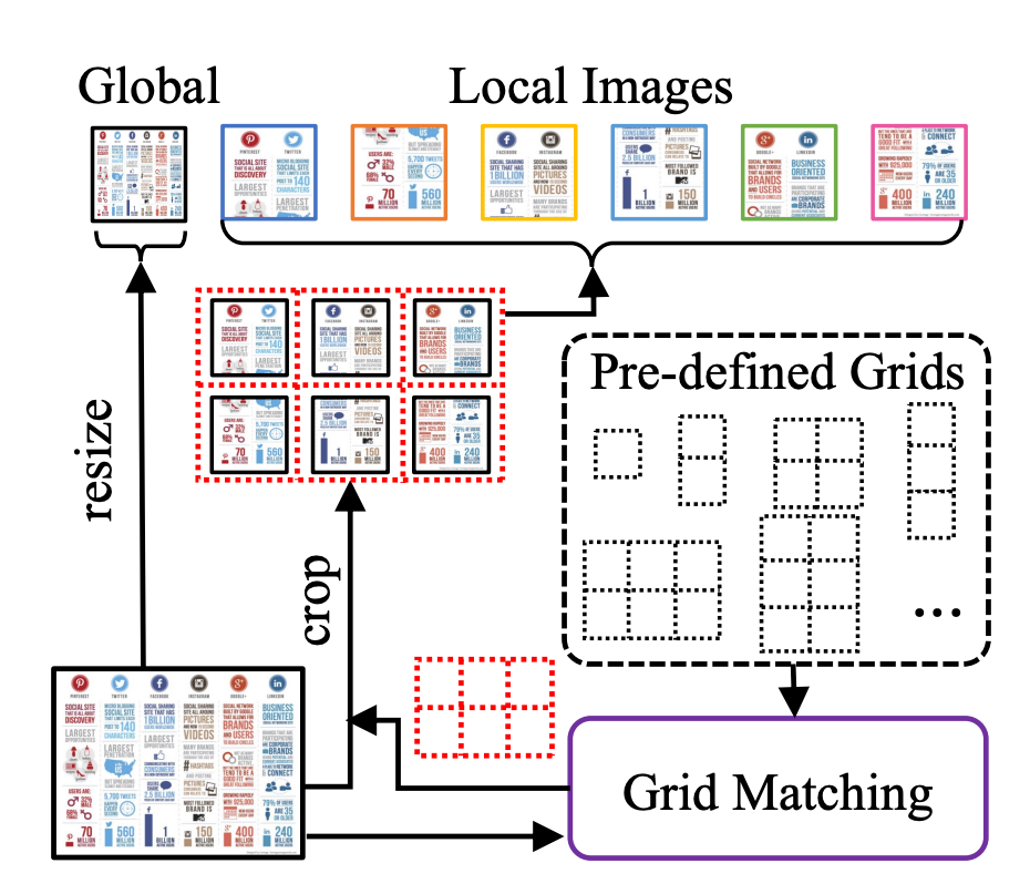1)通过对于大分辨率划分成一些预先定义好的栅格,再针对每个栅格进行视觉编码和融合。