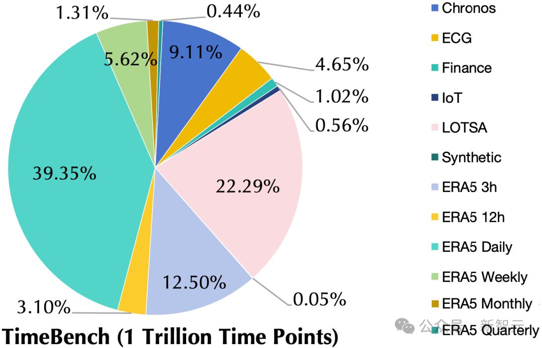 TimeBench 由大量真实数据和少量合成数据组成,覆盖多种时序预测的应用相关领域