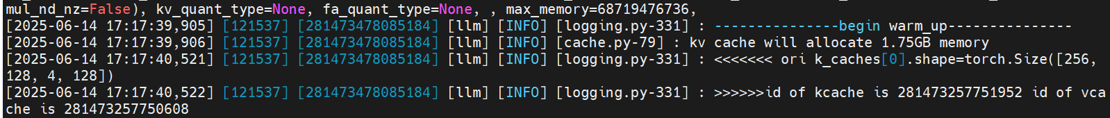 可以看到,日志中包含了“kv cache will allocate 1.75GB memory”,和我们上面估算的是一致的。