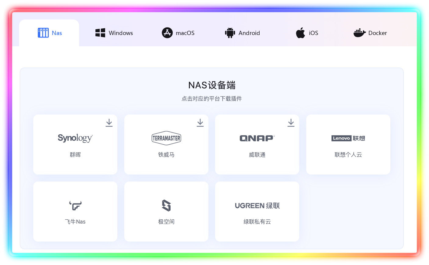 ▼节点小宝几乎能在所有平台进行安装,包括主流的 Windows、Mac、安卓、以及主流 NAS 平台以及 docker 应用