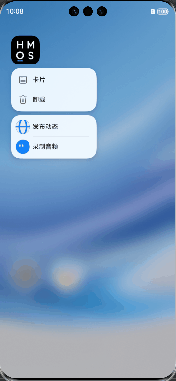 当我们长按桌面应用图标时,会弹出一个列表选项,除了系统自带的卸载之外,还有一些自定义的快捷功能,可以帮我们快速打开指定的页面。还有自定义卡片,可以添加到桌面,展示一些信息,也可以快速打开指定的页面。这一篇,介绍一下这两个快捷方式的使用方法。 shortcuts标签和桌面动态卡片,都可以通过router打开指定的ability,设置参数,打开我们设定的页面,包括冷启动、热启动的处理,下面会介绍。 先看一下实现效果: