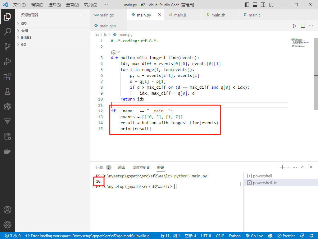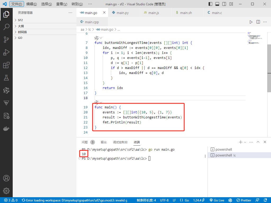 2025-06-30:按下时间最长的按钮。用go语言,你给了我一个二维数组 events,里面每个元素 events[i] = [按钮编号, 按下时间],代表在某个时刻按下了哪个按钮。