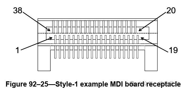 100GBASE-CR4 PMD的Style-1 MDI连接器包括38个信号连接。样式1 100GBASE-CR4 MDI连接器触点分配应如表92-15所示。