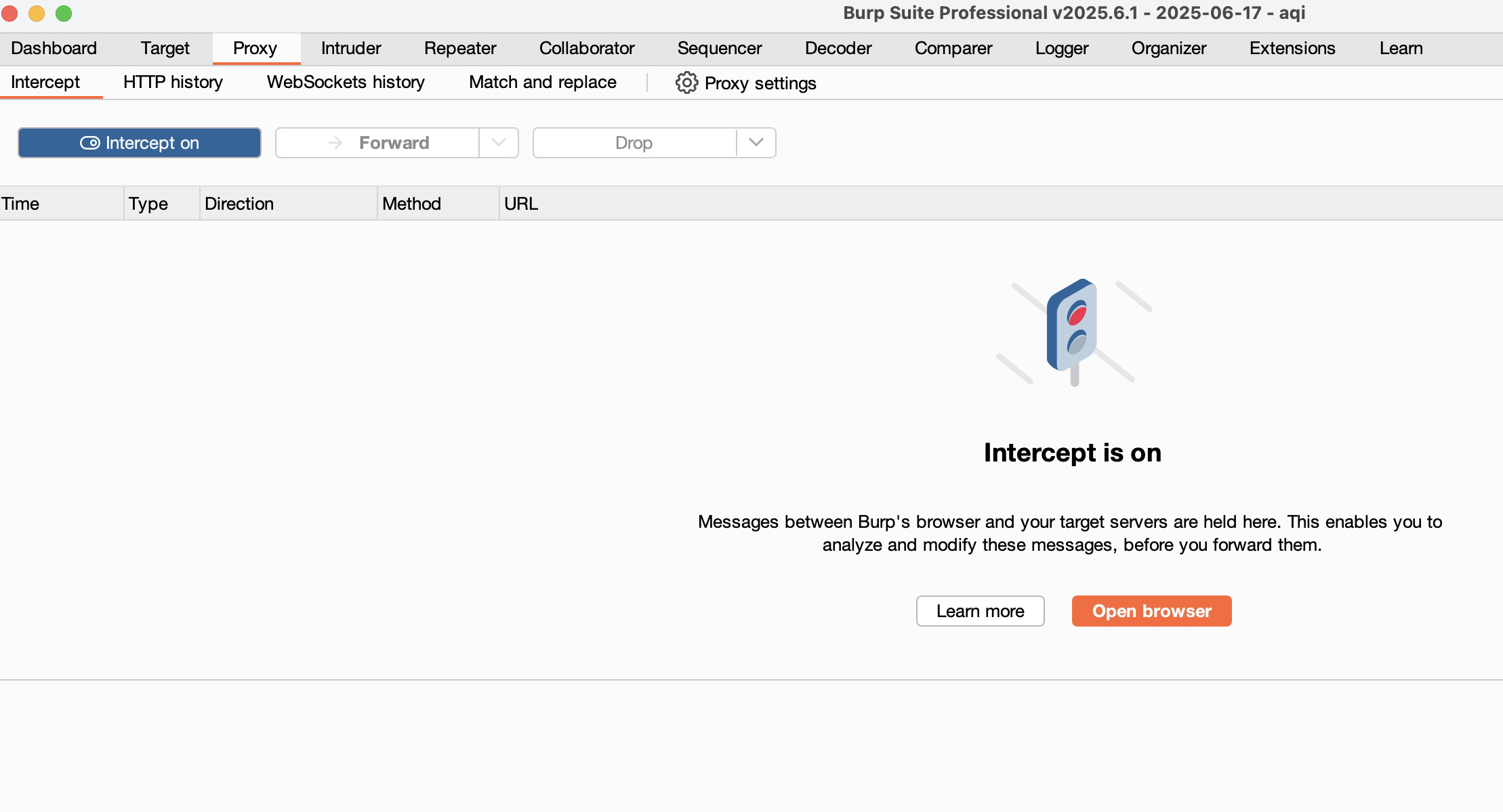 我们点击 Intercept is on, 打开拦截所有浏览器请求。