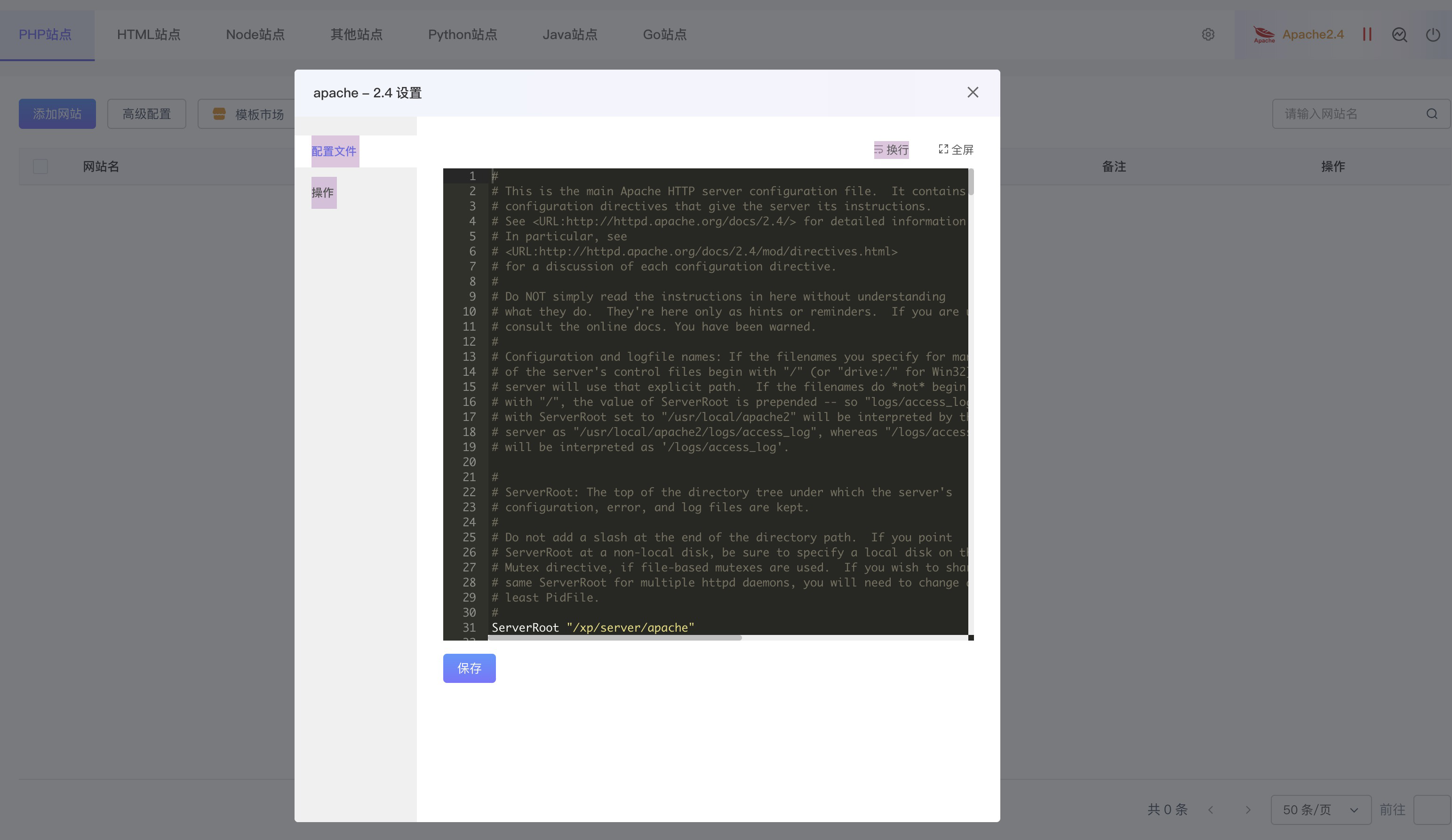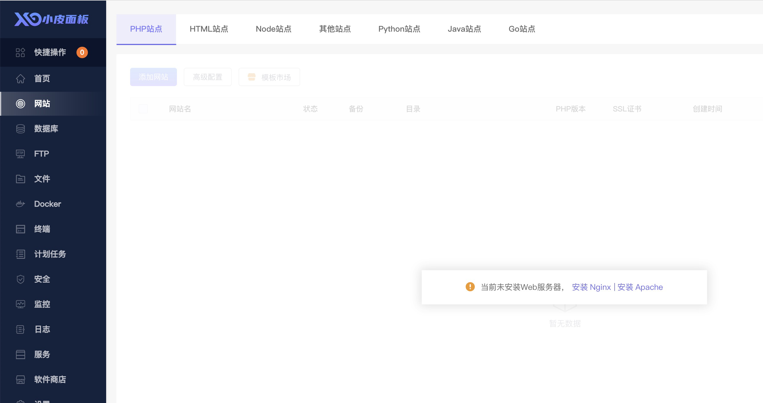 首先我们先安装服务器,点击 网站 ,选择 安装Apache。
