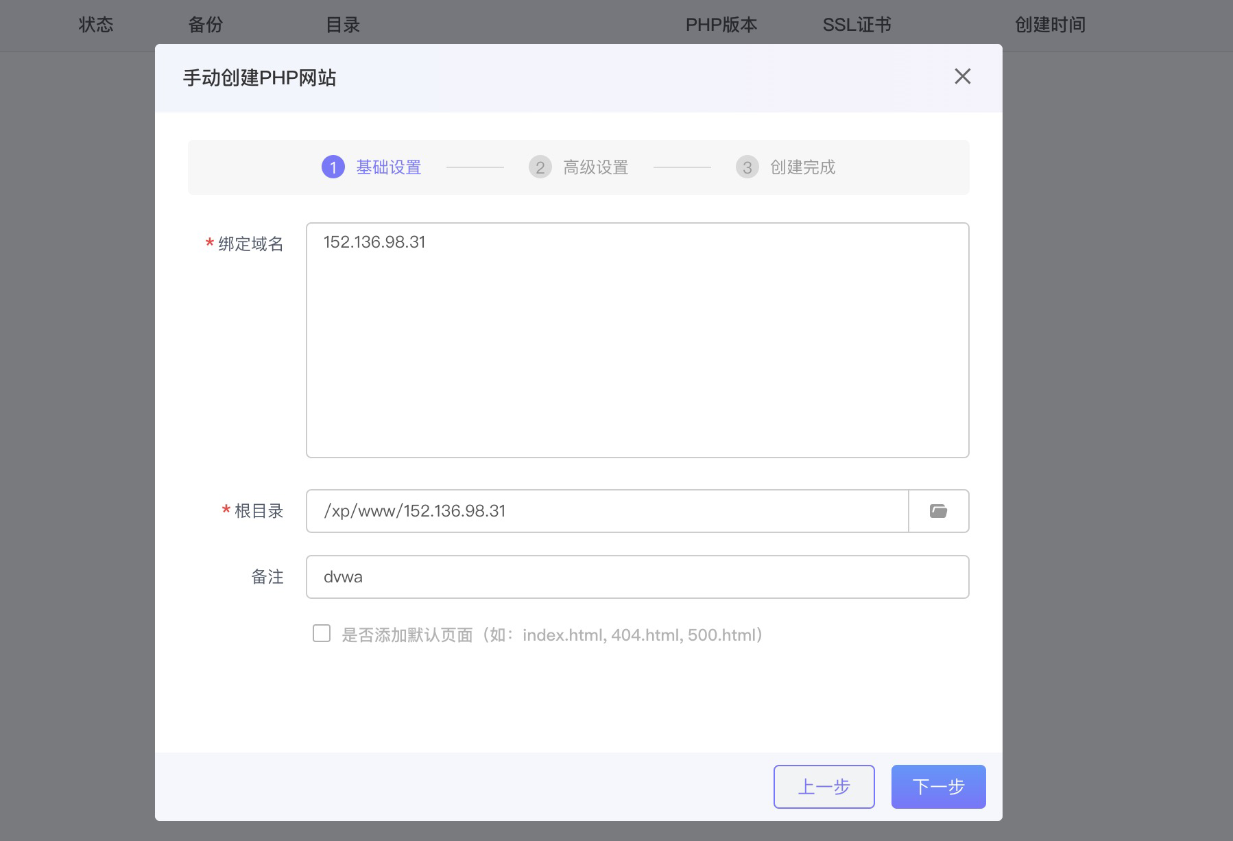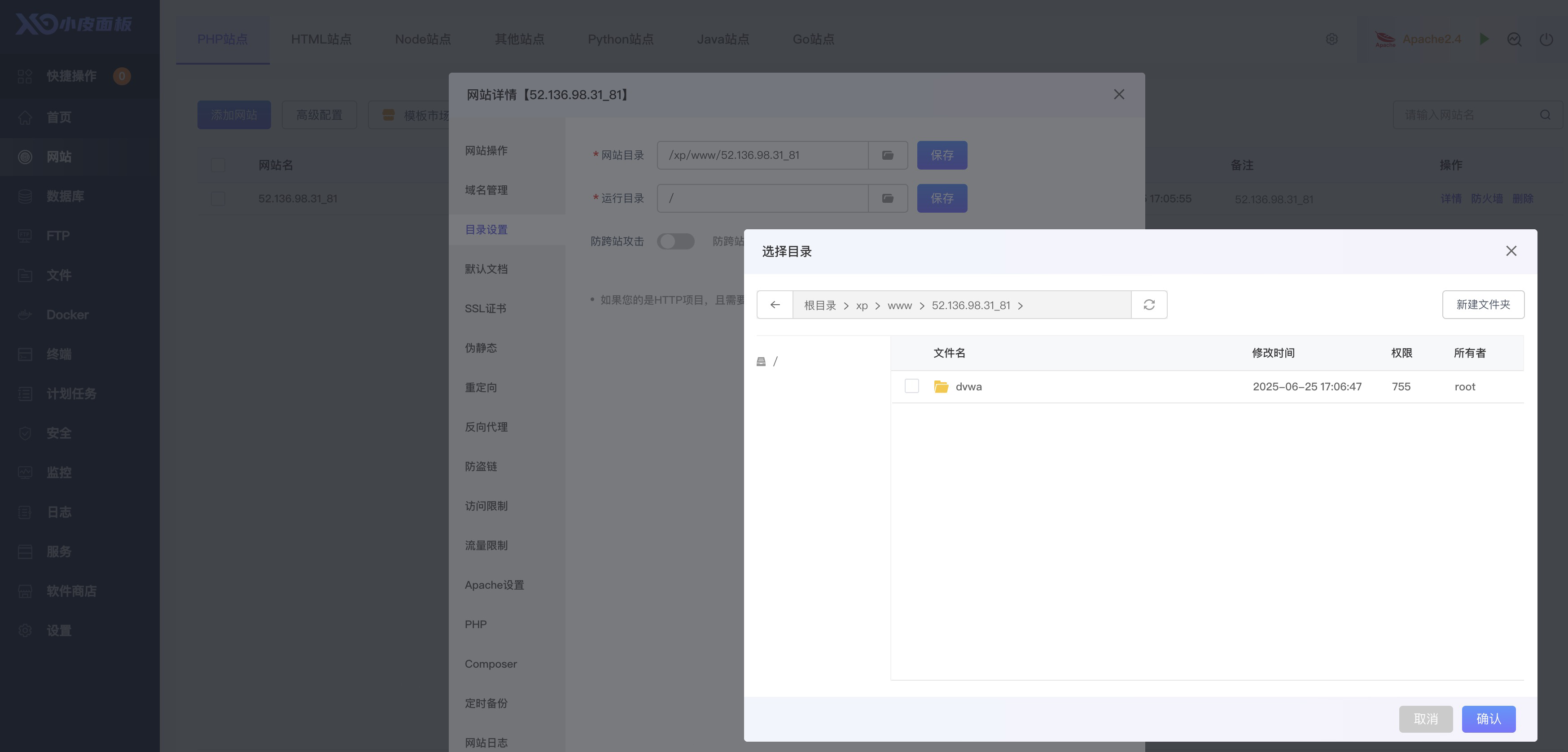 输入域名或者ip,复制这里的根目录,一会要将DVWA拷贝到这个目录中。