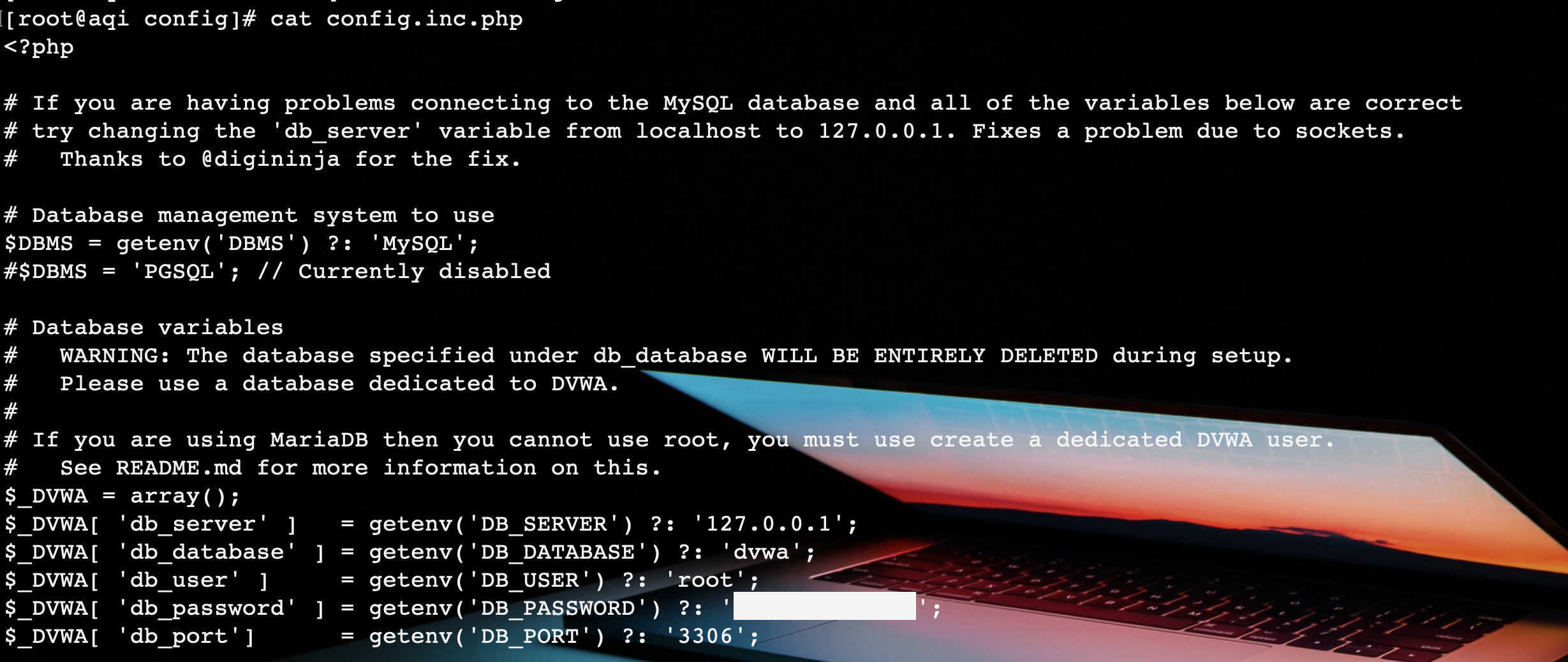 然后站点路径中就有了dvwa文件,config中的 db_user/db_user 就替换成了输入的变量。