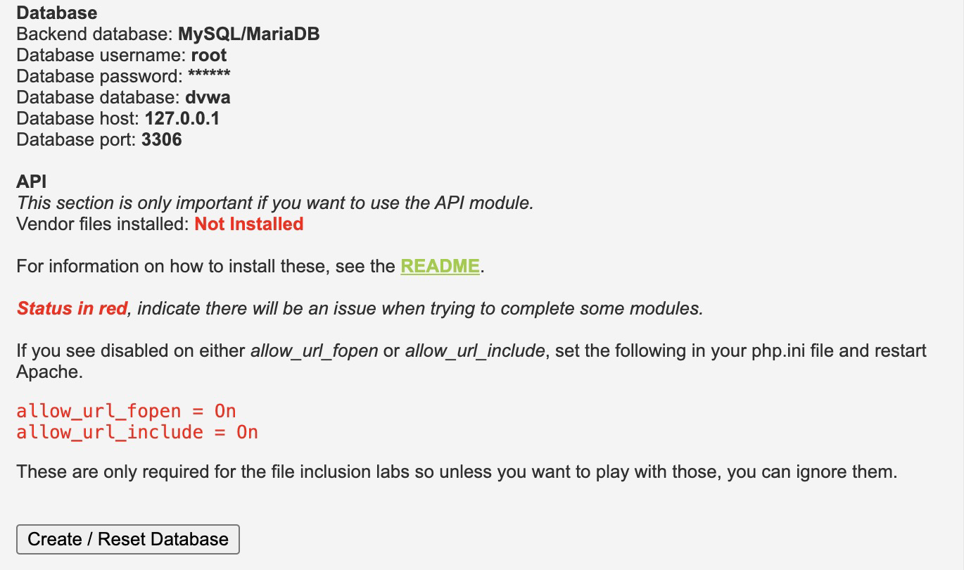 在浏览器中访问http://ip/dvwa/setup.php,进入到dvwa的初始化页面。