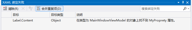 </Grid>正常运行时,会发现界面没有内容显示,调试时发现属性赋值又正常,这个时候我们可以借助XAML绑定失败窗口查看输出信息