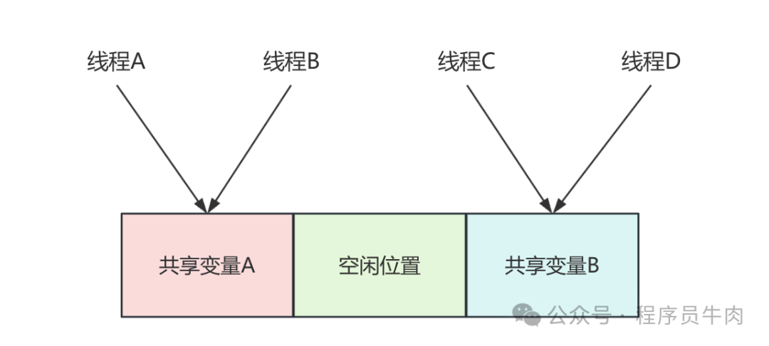 那为了缓解这种情况,我们就设计了竞技场的模式。其实就是一个共享变量数组。这样的话线程A和B在数组[0]上进行互换数据,线程C和D在数组[1]上进行互换数据。