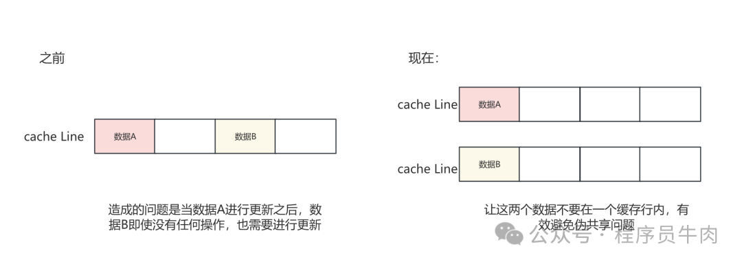 当多个线程同时访问位于同一缓存行中但逻辑上独立的变量时,即使这些变量没有真正的依赖关系,缓存系统也会将它们视为一个整体。此时,一个线程对其中一个变量的修改会导致整个缓存行失效,迫使其他线程重新从主内存加载数据,产生不必要的性能开销。