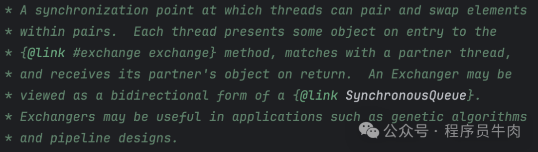 并且其实我们通过源码也可以发现:Exchanger更加关注于数据之间交换,而不是数据之间谁和谁进行交换。