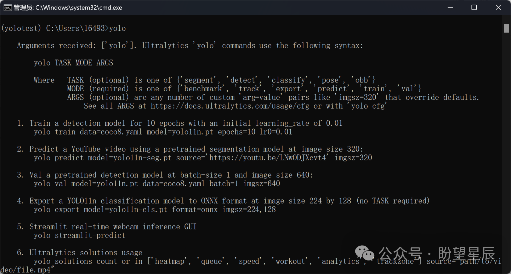 在命令行输入yolo命令验证是否成功。
