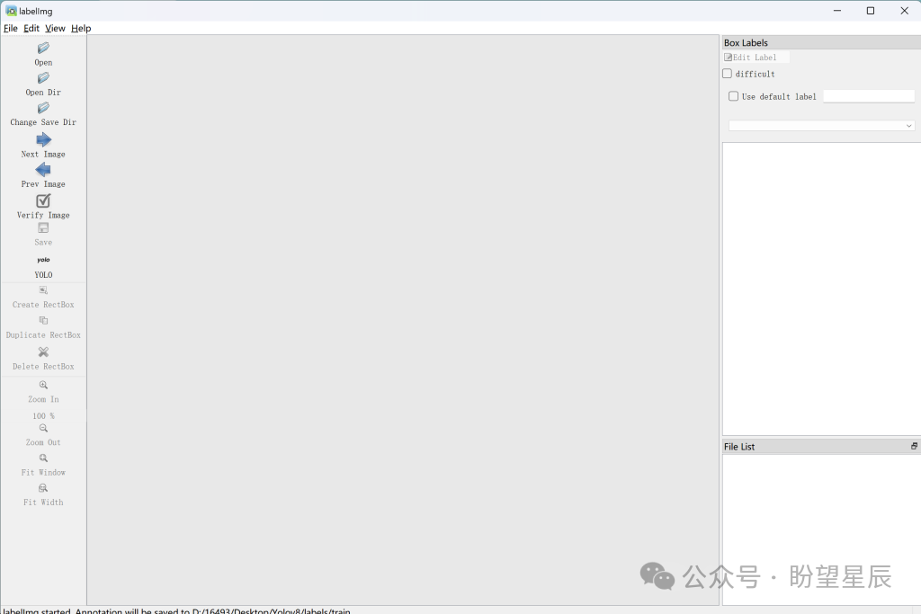 点击 Open Dir 按钮,选择到你的 images/train 文件夹即可,例如 E:/yolo8/images/train