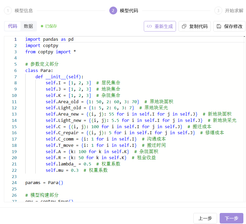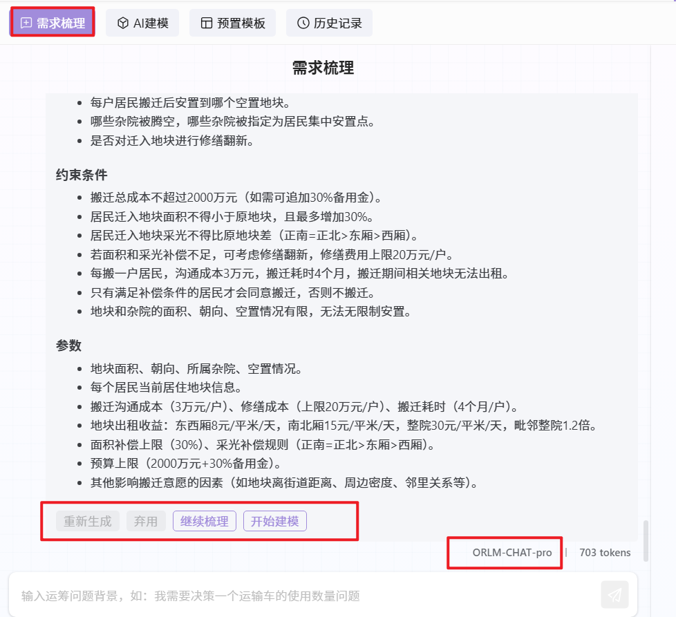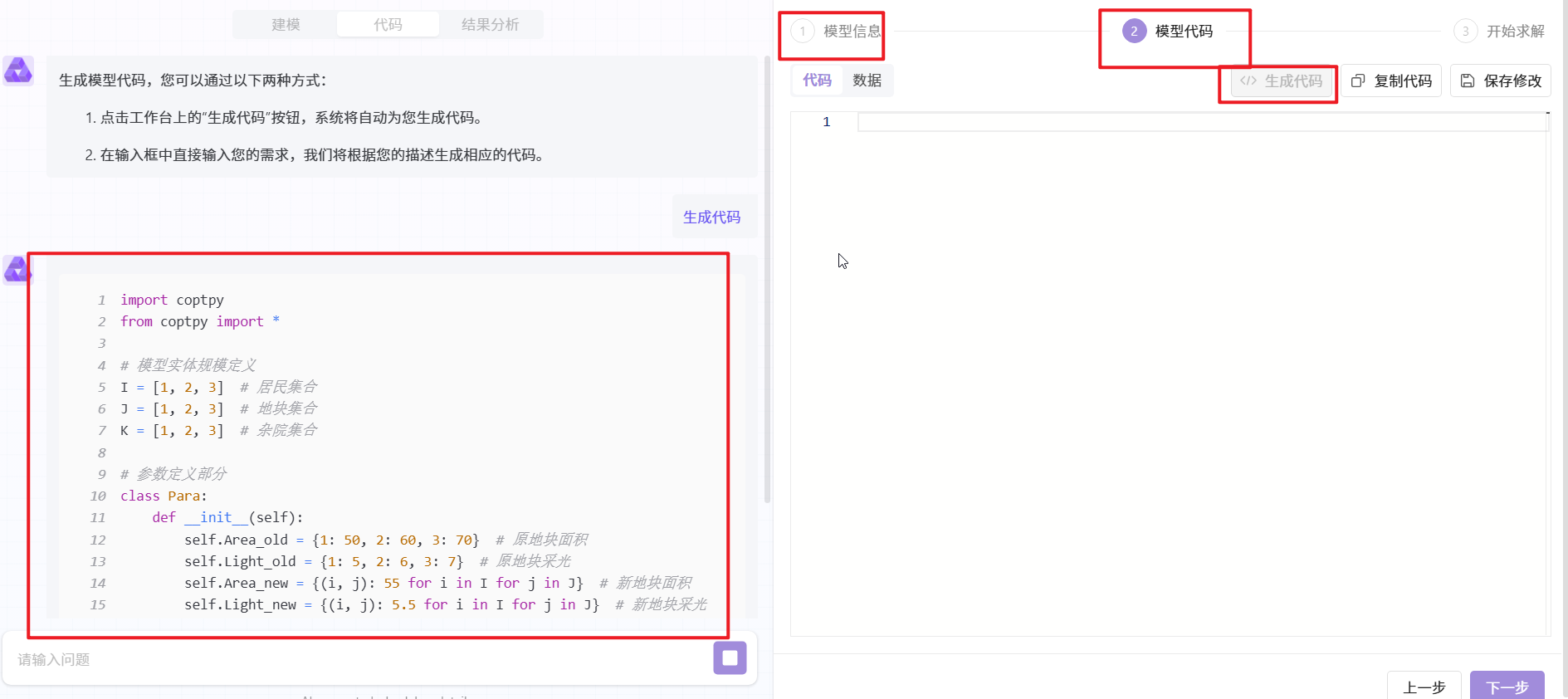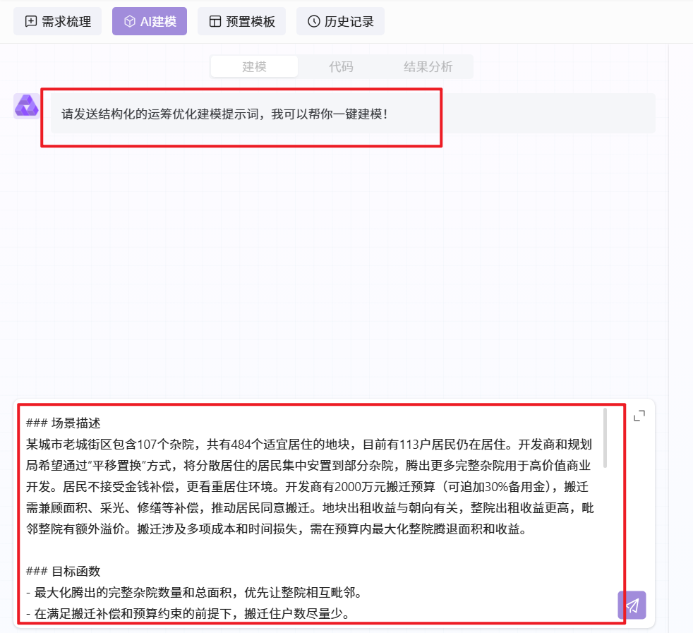具体而言就是你在这个平台上可以借助专有的大语言模型将问题结构化(数学建模),使用国产求解器(COPT,性能世界前二)求解和分析。