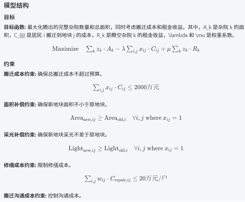 下面的这个就是具体的建模情况,给出来具体的这个约束条件的表示和目标函数的求解方式;