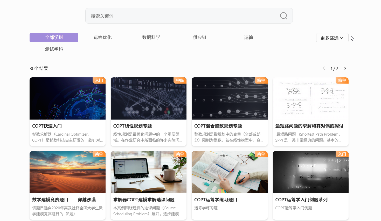这个平台里面也提供了很多的这个数学建模里面的优化的案例,供数学建模爱好者进行学习;