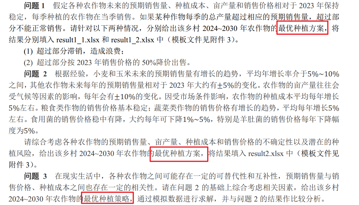 我找到了下面的几个例子:2024年的国赛C题,农作物的种植策略的优化问题