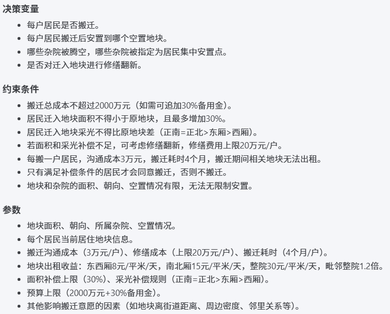 顺便看一下这个结构化提示词里面的这个决策变量和具体的参数,这个总结的还是很不错的: