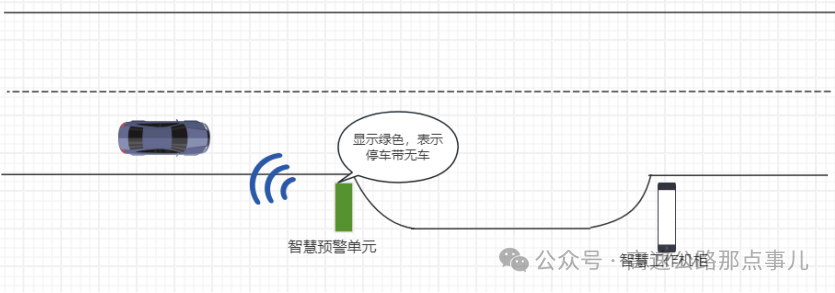 智慧预警单元安装在停车带后方,对来驶车辆进行车辆探测,同时进行预警提醒。其核心作用是完成来车的提醒,同时联动智慧工作机柜,对停靠车辆进行预警提醒,防止碰撞发生。