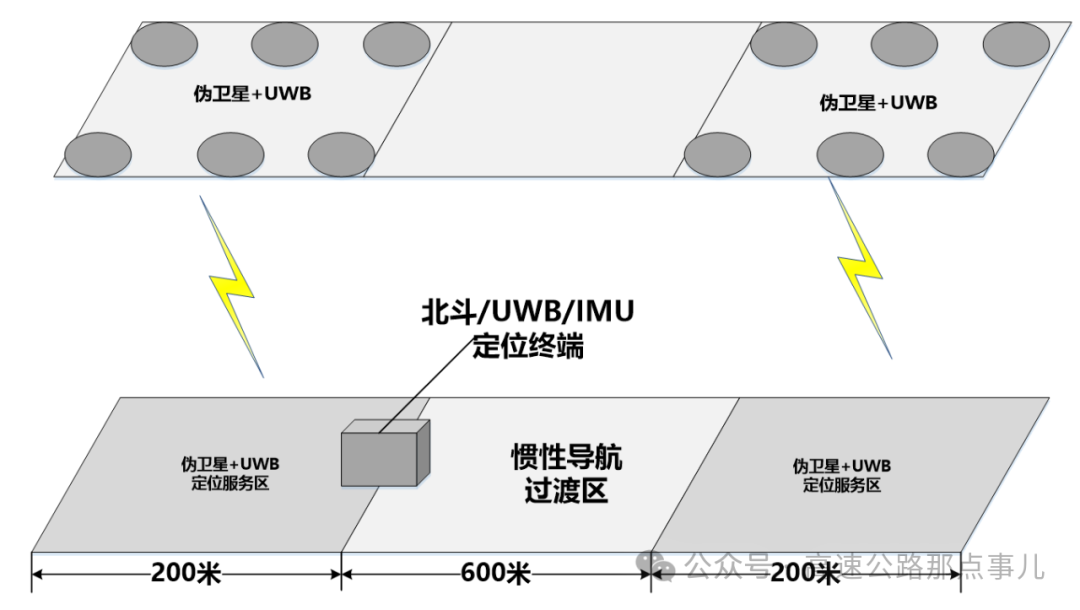 隧道内北斗高精度定位系统为北斗高精度定位系统的补充系统,在北斗导航信号和北斗地基增强信号无法到达的隧道环境下,通过”北斗+UWB+IMU+互联网”的技术手段,利用实时生成的与GNSS导航信号格式相同的伪卫星信号,实现隧道内外导航服务的无缝衔接,保障隧道内连续的亚米级服务能力。