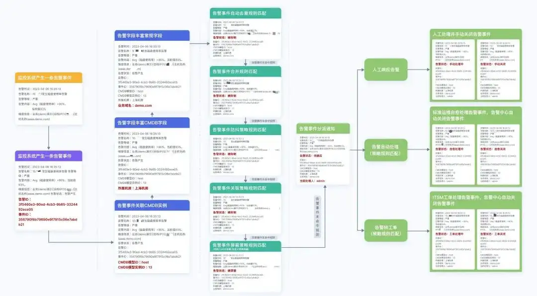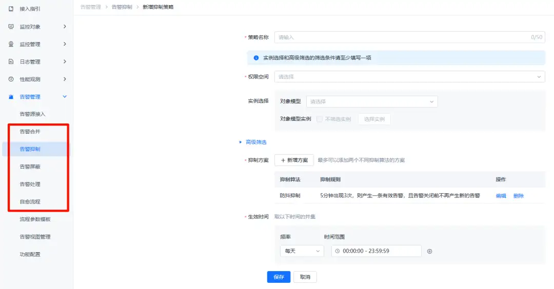 全栈智能可观测中心则将从告警管理、规则配置、处理、自动化转工单到抑制、屏蔽、丰富、关联分析等全流程能力内建于平台。其核心优势在于提供了可视化的告警规则配置界面,大幅降低了使用门槛,使普通运维人员也能轻松掌握和维护,促进告警规则的持续优化和知识沉淀,从而不断提升告警的准确性和有效性。