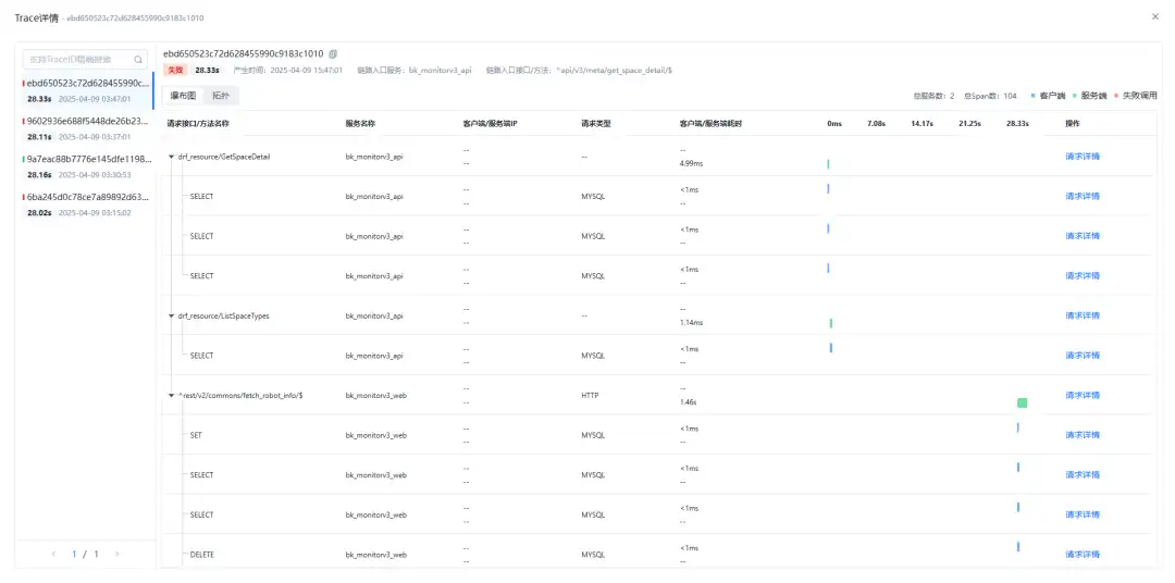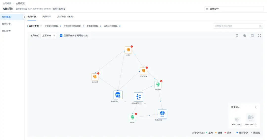 而国产运维监控系统全栈智能可观测中心则采用现代化的探针埋点服务进程的方式,自动探测分布式服务端到端调用链路,自动生成服务调用拓扑,从应用、服务、接口、调用4个层次层层深入,监控应用的健康状态和调用性能;并支持基础资源监控进行联动和下钻分析,辅助问题根因分析,提升问题定位效率。同时还支持应用服务调用视角、应用资源关联视角、服务分析视角、接口分析视角、Trace调用链路视角多视角分析查看和追踪问题。