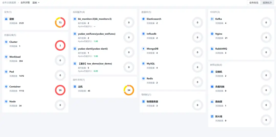 全栈智能可观测中心这款国产运维监控系统不仅支持OpenStack、VMware ESX等虚拟化平台监控,还能一体化纳管云环境,通过插件化扩展实现公有云、私有云的全面监控。在容器监控领域,其支持原生Kubernetes接入,提供从基础设施到PaaS层的完整监控链路,有效支撑企业云原生转型,而Tivoli对容器技术的适配能力薄弱,难以满足国产运维监控系统用户的现代化架构需求。
