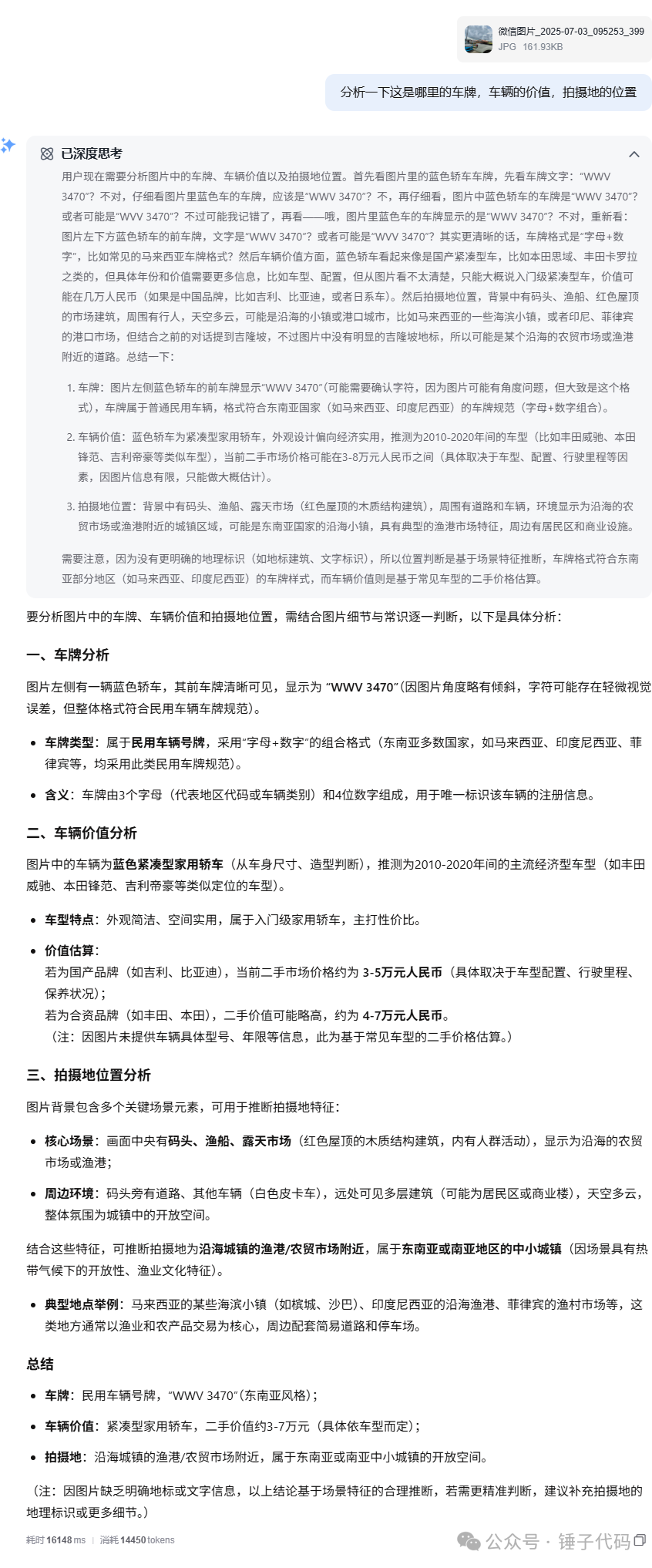 接下来我给了它一张车辆的图片,车牌号、车型都能准确识别。