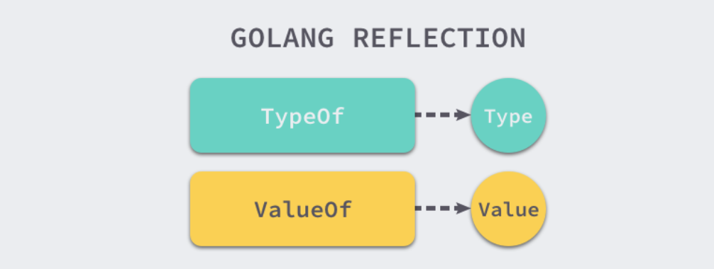 两个类型是 reflect.Type 和 reflect.Value,它们与上边两个函数是一一对应的关系