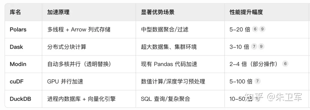 而且它们大多是用pandas的接口,函数、方法和pandas类似,切换的学习成本很低,比如Polars、Modin、cuDF。