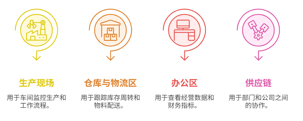 ③ 办公区、管理区 财务、计划、老板的办公室常用,用于看经营数据、财务指标、整体产能状况。