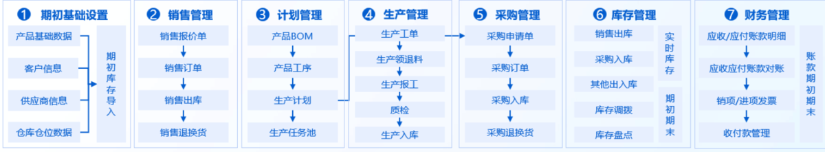 别急着做系统、搭功能,先把你的工厂“真实生产流程”画出来。 从接订单、下采购、排产、领料、生产、入库、出货、回款,把整个流程一步一步捋顺。