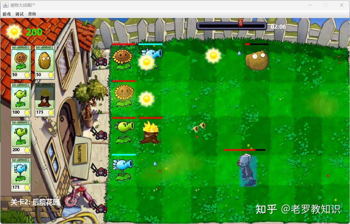 - 碰撞检测 :子弹与僵尸、僵尸与植物、僵尸与小推车 - 伤害计算 :不同武器造成不同伤害 - 特殊效果 :冰冻效果、火焰增强效果 - 小推车防线 :最后防御机制