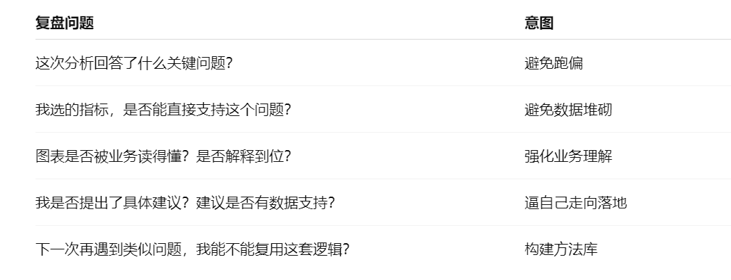 我建议你用下面这个“BI分析师复盘五问”,写在每份报告最后: