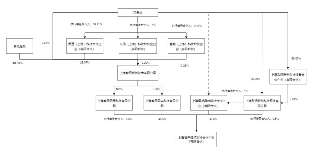 邓泰华持有上海恒岳鼎峰科技合伙企业(有限合伙)99.00% 有限合伙人份额,该等份额拟由上海智元新创技术有限公司(智元机器人)的创始人及核心高管邓泰华、彭志辉、姜青松、姚卯青、王闯、田华等以及重要产业方、战略合作方持有,创始人及核心高管的预计出资金额不低于上海恒岳鼎峰科技合伙企业(有限合伙)出资金额的 50%。
