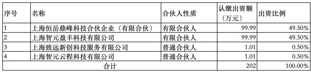 智元恒岳的执行事务合伙人为智元云程和致远新创,收购人的合伙人及出资情况如下: