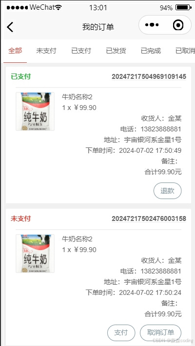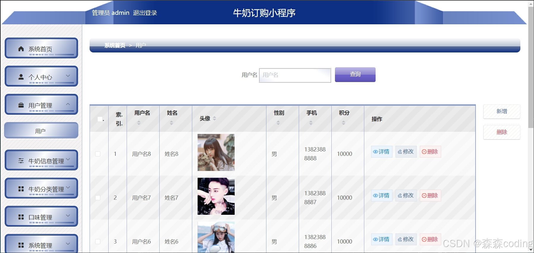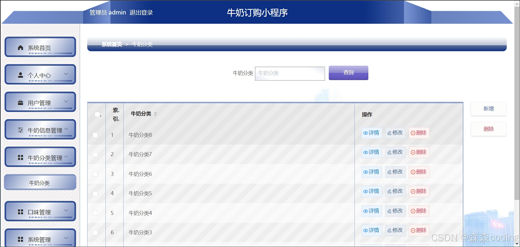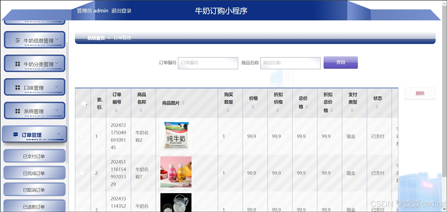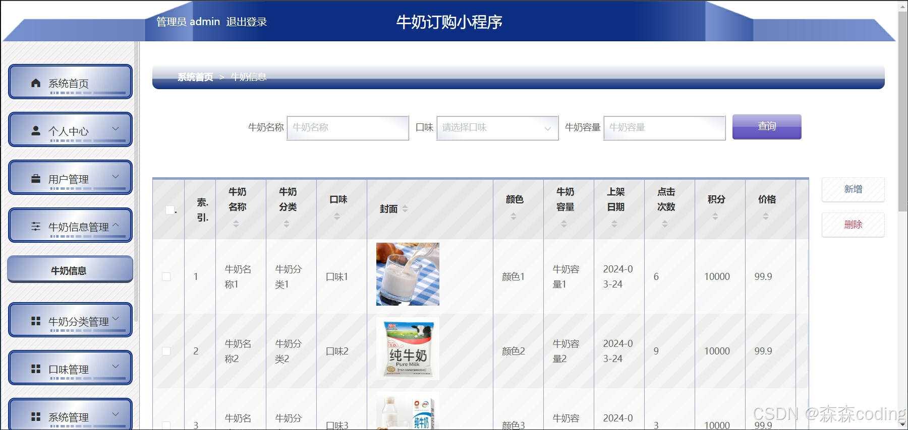 ⭐️用户:牛奶浏览、订购产品、收藏、购物车、评价、订单、个人信息管理等 ⭐️管理员:用户管理、牛奶管理、牛奶分类管理、购物车管理、订单管理、公告管理等