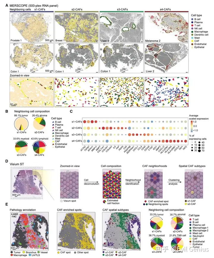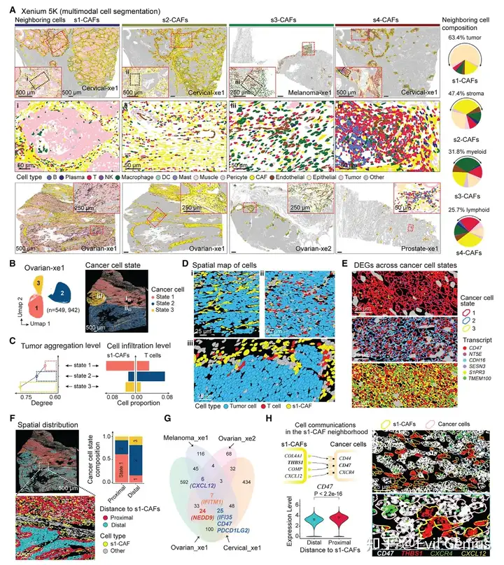 文献复习--单细胞空间多组学揭示癌症相关成纤维细胞的保守空间亚型与细胞邻域结构