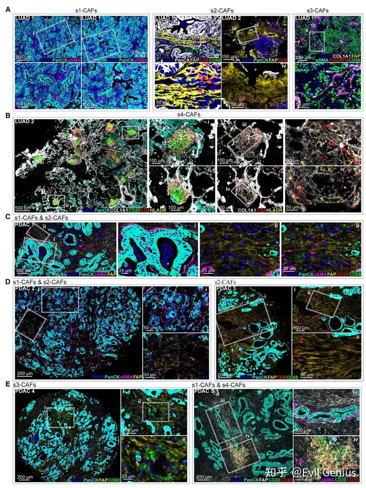 这些发现凸显了CAFs在空间组织上的异质性——不同亚型通过独特的分布模式与形态特征,在肿瘤生物学和免疫调控中发挥差异化功能。