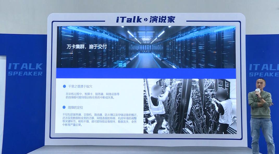 常言道:“千里之堤溃于蚁穴”一个偏差,看似微不足道,却足以在复杂系统中引发巨大连锁反应。随着模型参数量从千亿迈向万亿,万卡集群成为这一轮大模型基建军备竞赛的标配,由大量的硬件设备组成,硬件故障的概率较高。智算服务器通常配备有多个GPU、NPU或TPU等专用计算芯片,这些芯片拥有大量计算核心,能够高效处理复杂的AI算法,尤其是那些涉及大量并行计算任务的场景。在训练过程中,硬件方面GPU卡、服务器、网络设备等的故障都可能导致训练任务的中断或失败。而且,由于集群规模庞大,故障的定位和排查也变得非常困难,需要耗费大量的时间和精力。