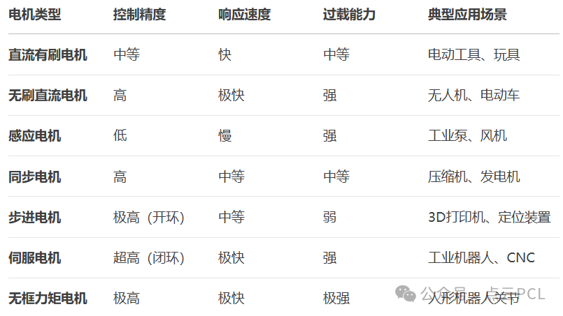 表1:主要电机类型特性对比