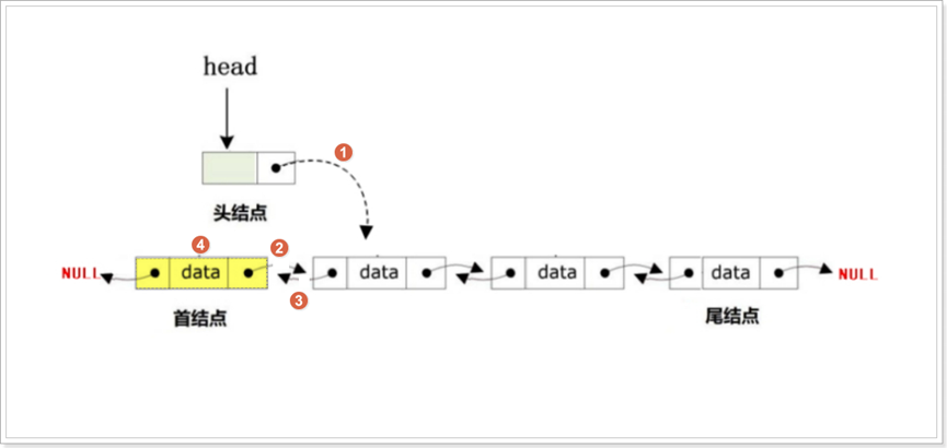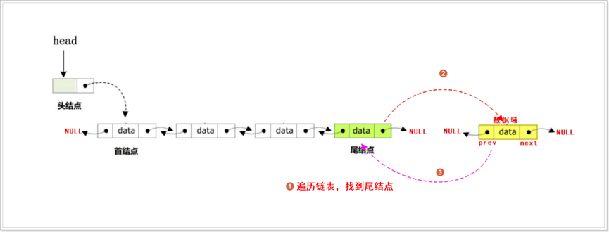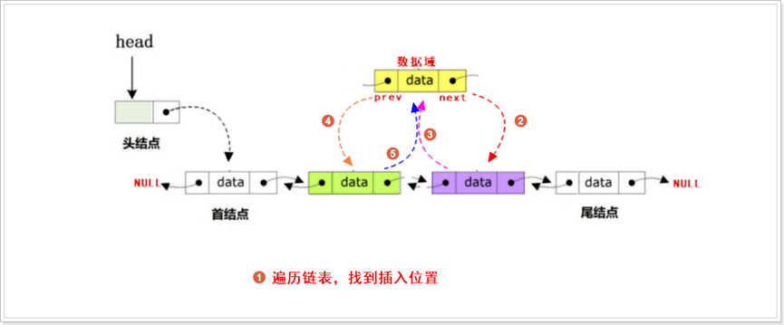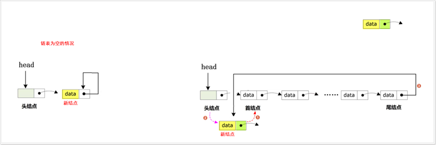 }(3) 根据情况可以从链表中插入新结点,此时可以分为尾部插入、头部插入、指定位置插入: