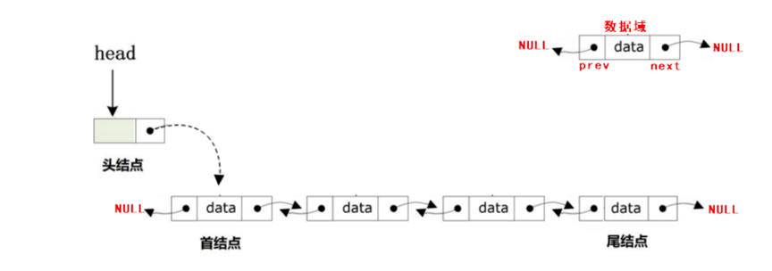 struct DoubleLinkedList *prev; //直接前驱的指针域