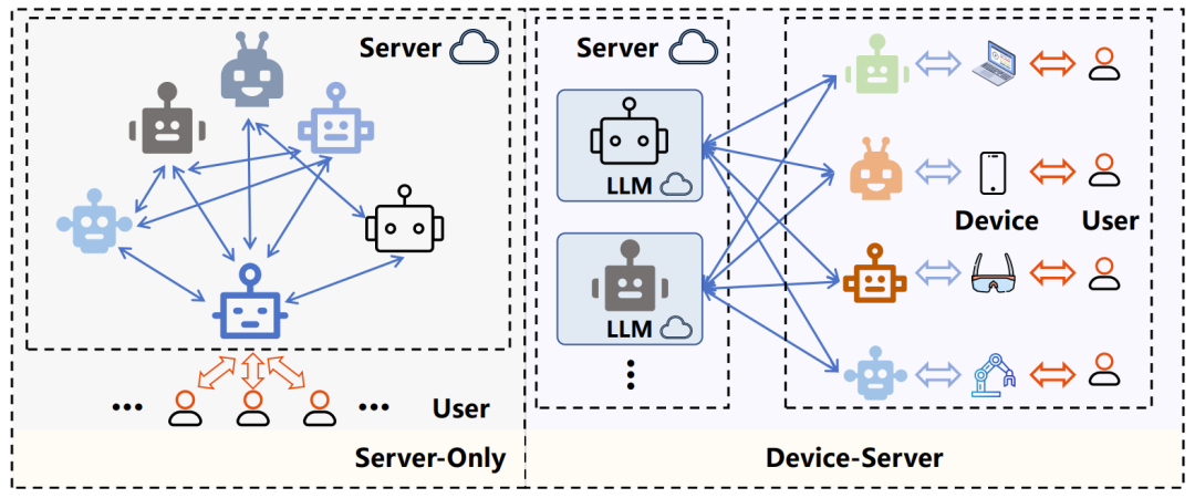 传统的仅服务器范式与设备-服务器协同范式的比较