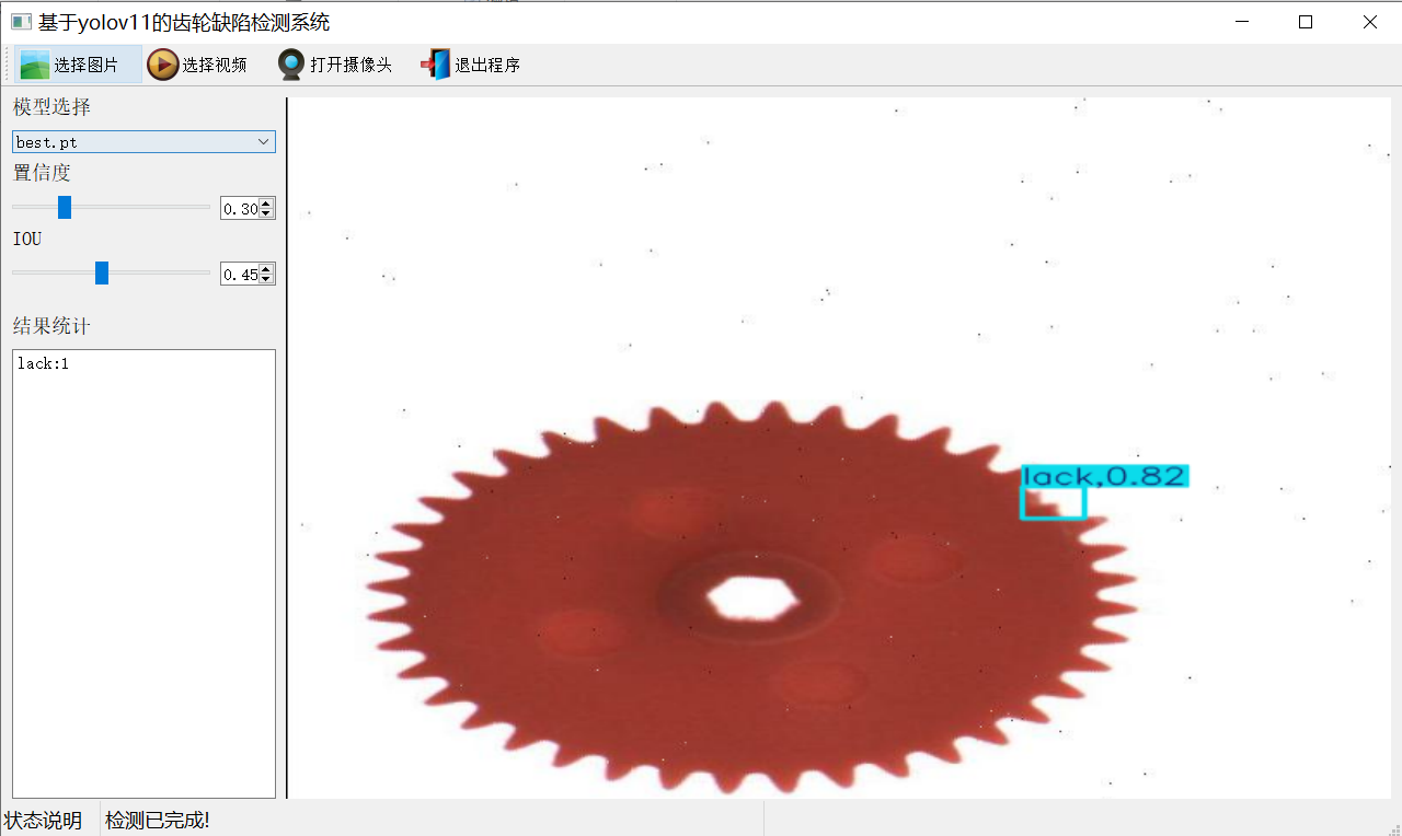 系统界面基于PyQt5开发,提供直观的操作体验。该技术方案显著提升了齿轮缺陷检测效率,为制造业质量管控提供了可靠支持。