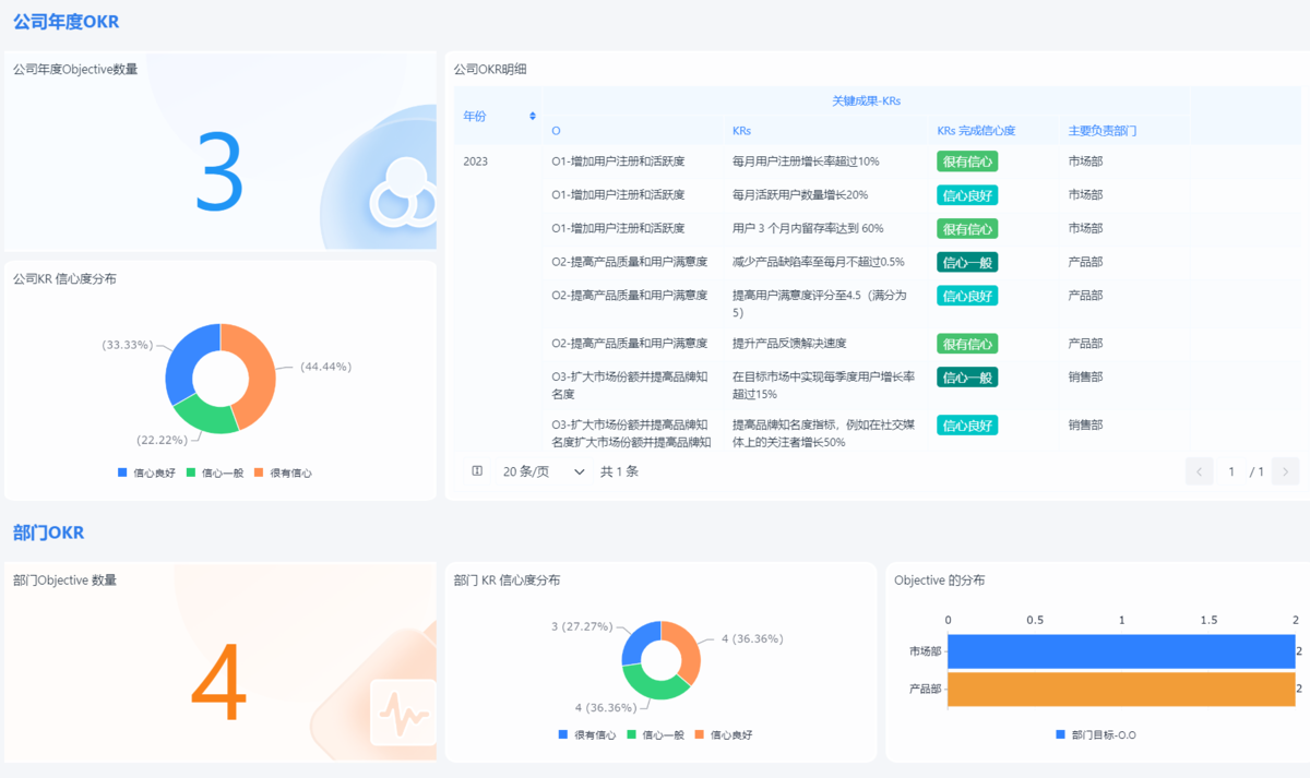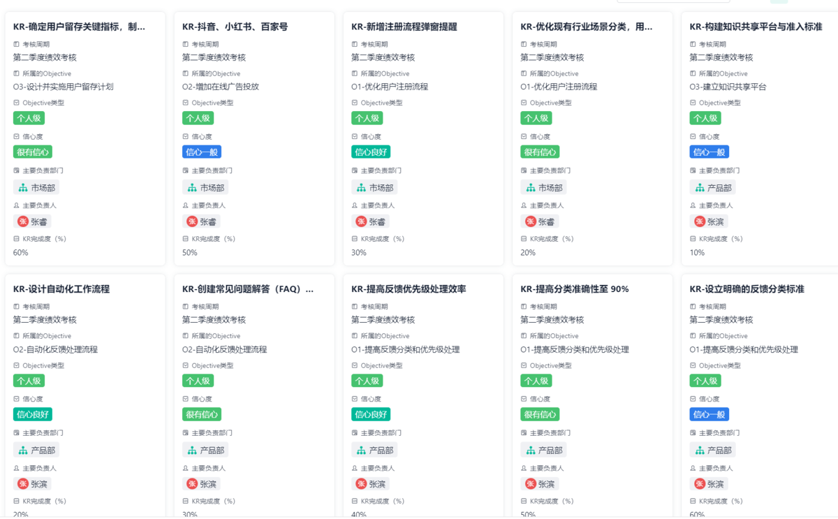 - 可视化呈现目标树、个人目标卡片、团队进展图等;