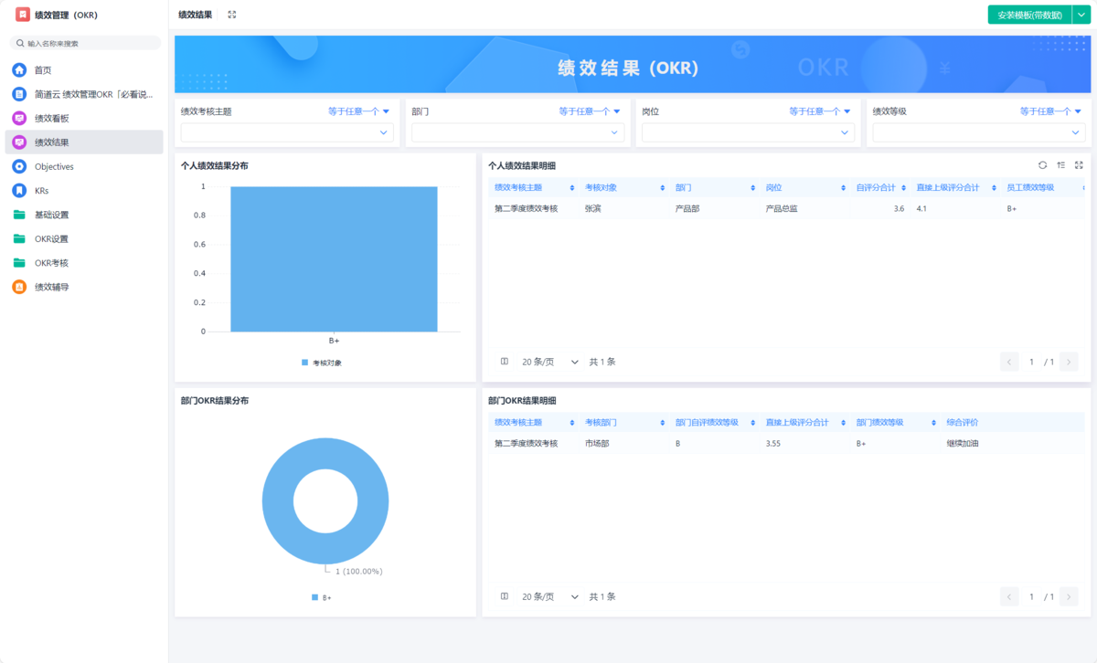 注:本文示例所用方案模板:简道云绩效管理系统,给大家示例的是一些通用的功能和模块,都是支持自定义修改的,你可以根据自己的需求修改里面的功能。